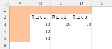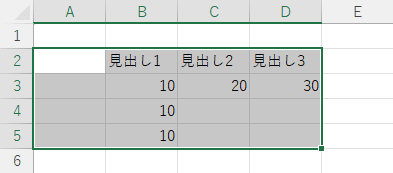 アクティブセル領域の左上側の空のセルにアクティブセルがあるときは、そこから範囲が選択されます。